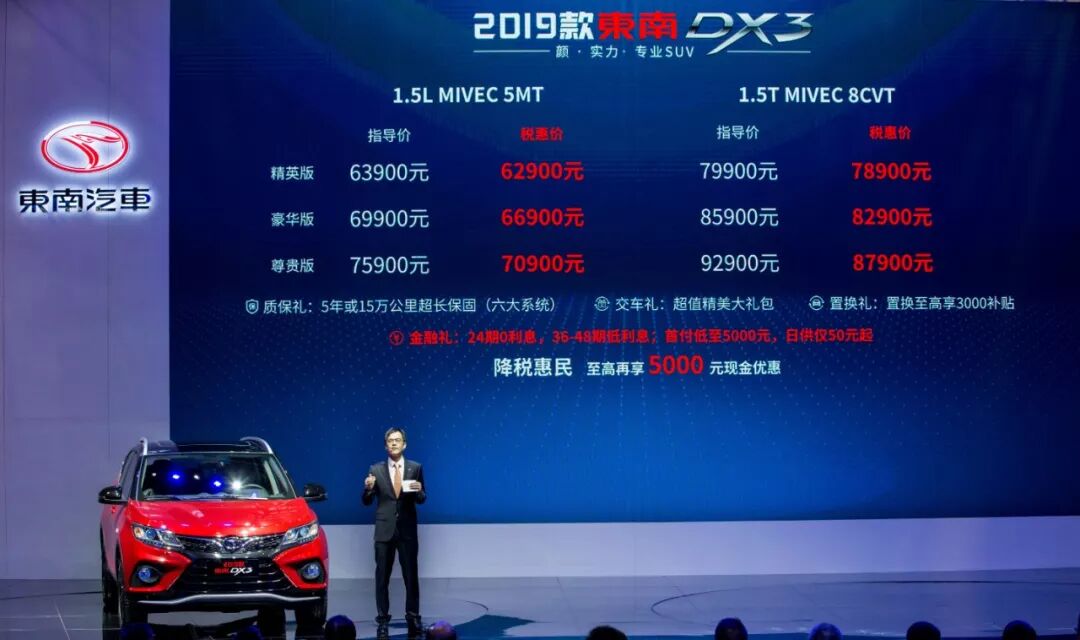 Tako从官方渠道获悉,2019款东南DX3已经正式上市,税惠价为6.29-8.79万元。最高配置也不到10万元,这款SUV的性价比是真滴不错。