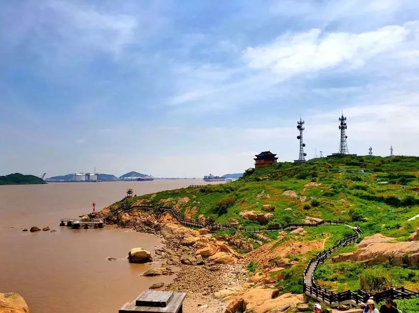 ● 10点坐渔船到达对面的洋山镇。我们吹着海风,沿着木栈道一路前行,看着远处的货轮、渔船,五颜六色、帆帆点点飘荡在海面上,构成一道美丽的风景线。据说在退潮后,经常会有人到海边是捡海瓜子,这也是一种名贵的海菜哦,这边就是小梅山。