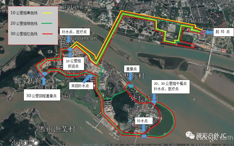 (3)专业组全长30公里,起点体育场-经海天大道左拐新城大桥-过大桥后右转海堤-过恒大悦珑湾-长峙岛高尔夫球场-香樟街-长峙中路-过渡口码头沿海堤-灯塔-长峙中路和海大北路交叉口原路折返(红楠海苑边上)到新城大桥—海天大道—翁浦公园-田螺峙路—千岛路—海景大道海堤—舟山标志性建筑红太阳-舟山文化公园—海天大道—体育场路终点体育场,关门时间为7个小时。