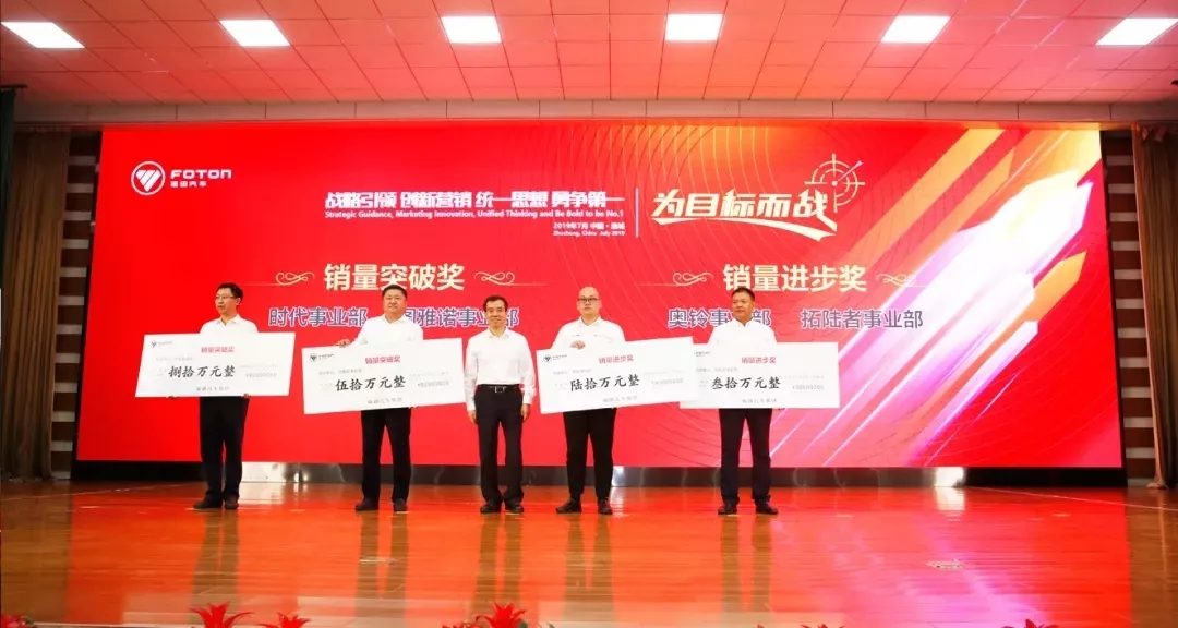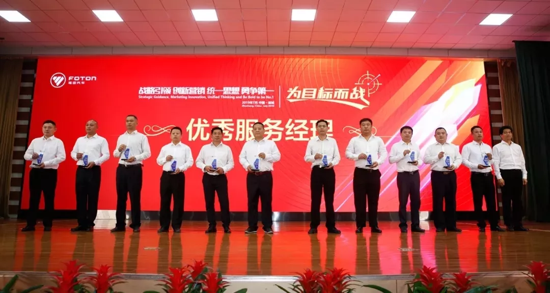 大会对福田汽车2019年销量突破奖、销量进步奖单位及市场一线优秀大区经理、市场部经理、服务经理进行了表彰。