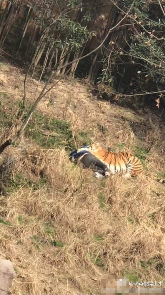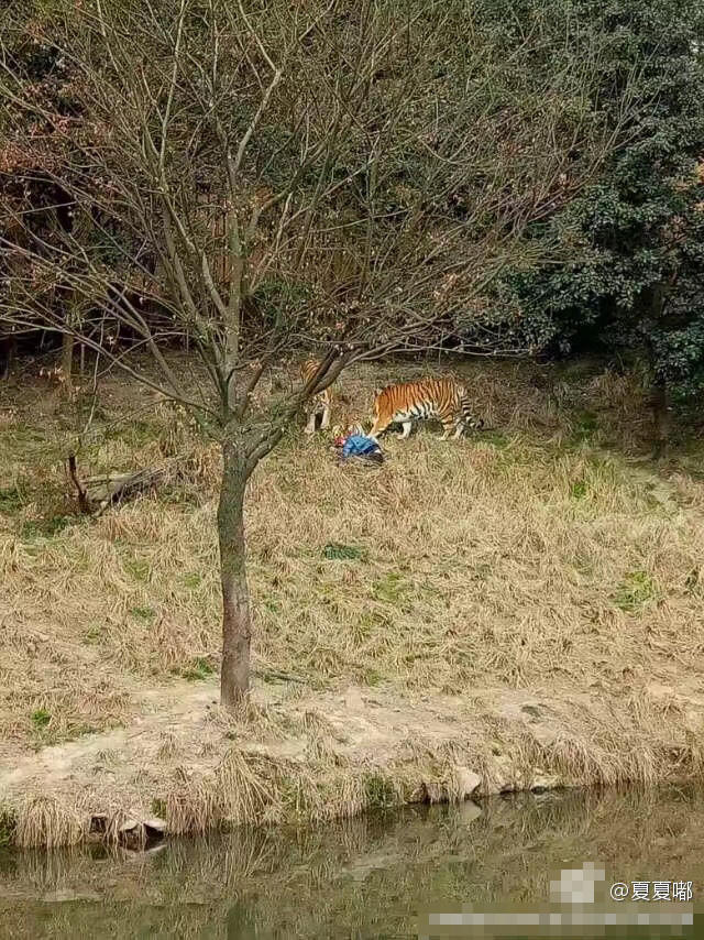 现场一网友在微博发布照片称,雅戈尔动物园老 虎山中出现一名男子,隔着河岸可以看到老 虎撕咬男子。"我是闻声过去的,那时已经有工作人员了。"
