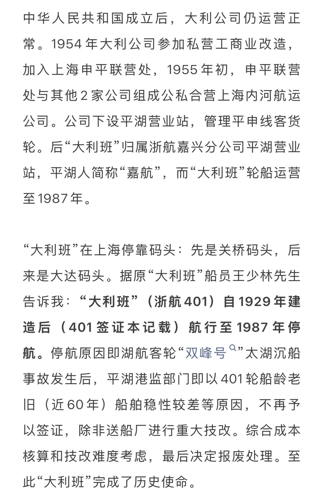 一百年前的今天,平湖“大利班”首航!你小时候坐过吗?