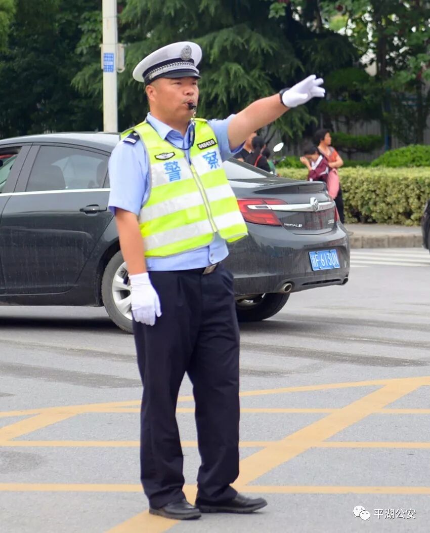 昨天是高考学考选考的第二天,中午11时20分许分,考试即将结束,接考生的汽车在东湖大道平湖中学门口排起了长龙,道路拥堵不堪。为了给过往的车辆和考生家长创造畅通的交通秩序,交警王晓东和同事来到路口一辆一辆地疏导着过往的车辆。