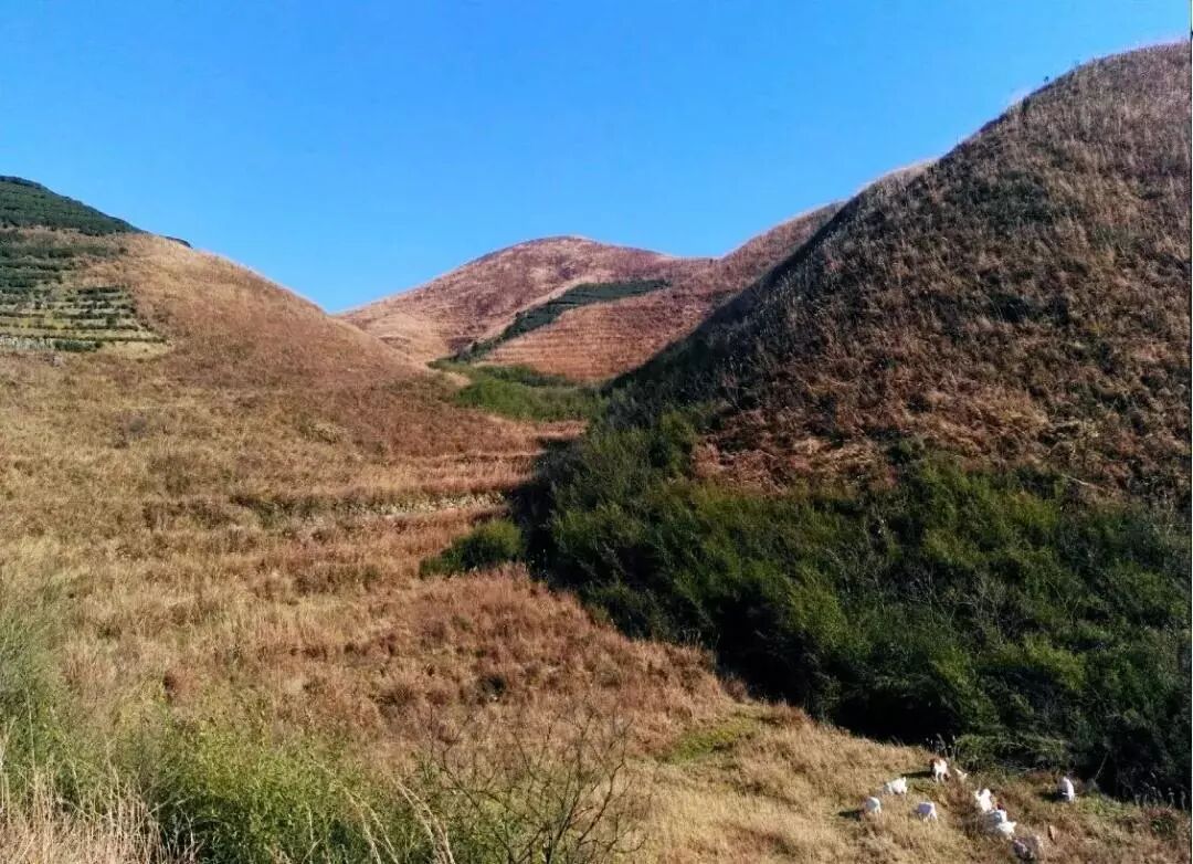 浙中小武功 大尖山,又称大肩山,五百岗核心地带,为绍兴柯桥区与嵊州市的分界岭。山上没有树,只长草,春翠秋黄,十一月份,草甸从深,疾行大尖山,颇有武功山的味道。 #4q1{)=
