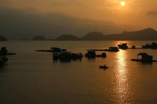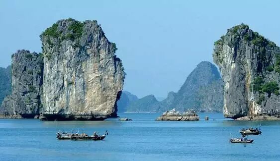 下龙湾-蔚蓝的还平面朦胧中愈来愈近青黛的山丘矗立在海上。喀斯特地貌描绘出一幅壮美的山水画卷,山上植被茂密郁郁葱葱,海面水平似镜。轻漫的薄雾像一件披纱盈盈的搭在诸多山丘上连成一片,好一幅山水大写意,浓墨重彩都无法与之争艳。这就是世界七大自然遗产,素有“海上桂林”之称的越南下龙湾。它纯真甜美,不施粉黛却靓丽逼人,仅仅是让您仰望一下,也会感到束手无策,无所适从……