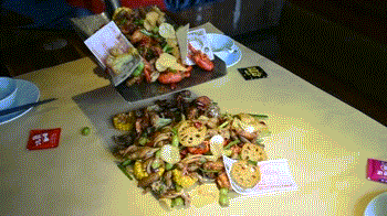 随着“哗”的一声,食物就上桌堆在眼前
