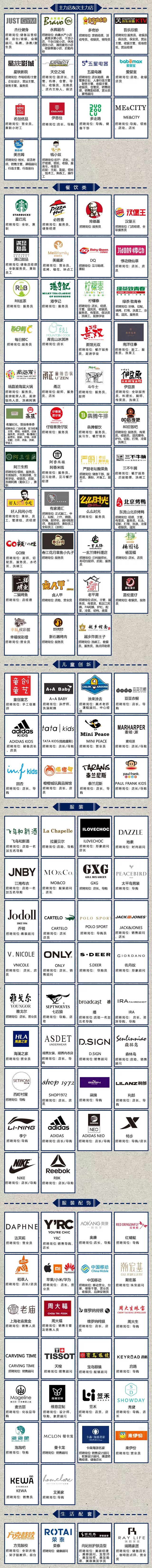 160余个品牌,2000+工作岗位任你挑选