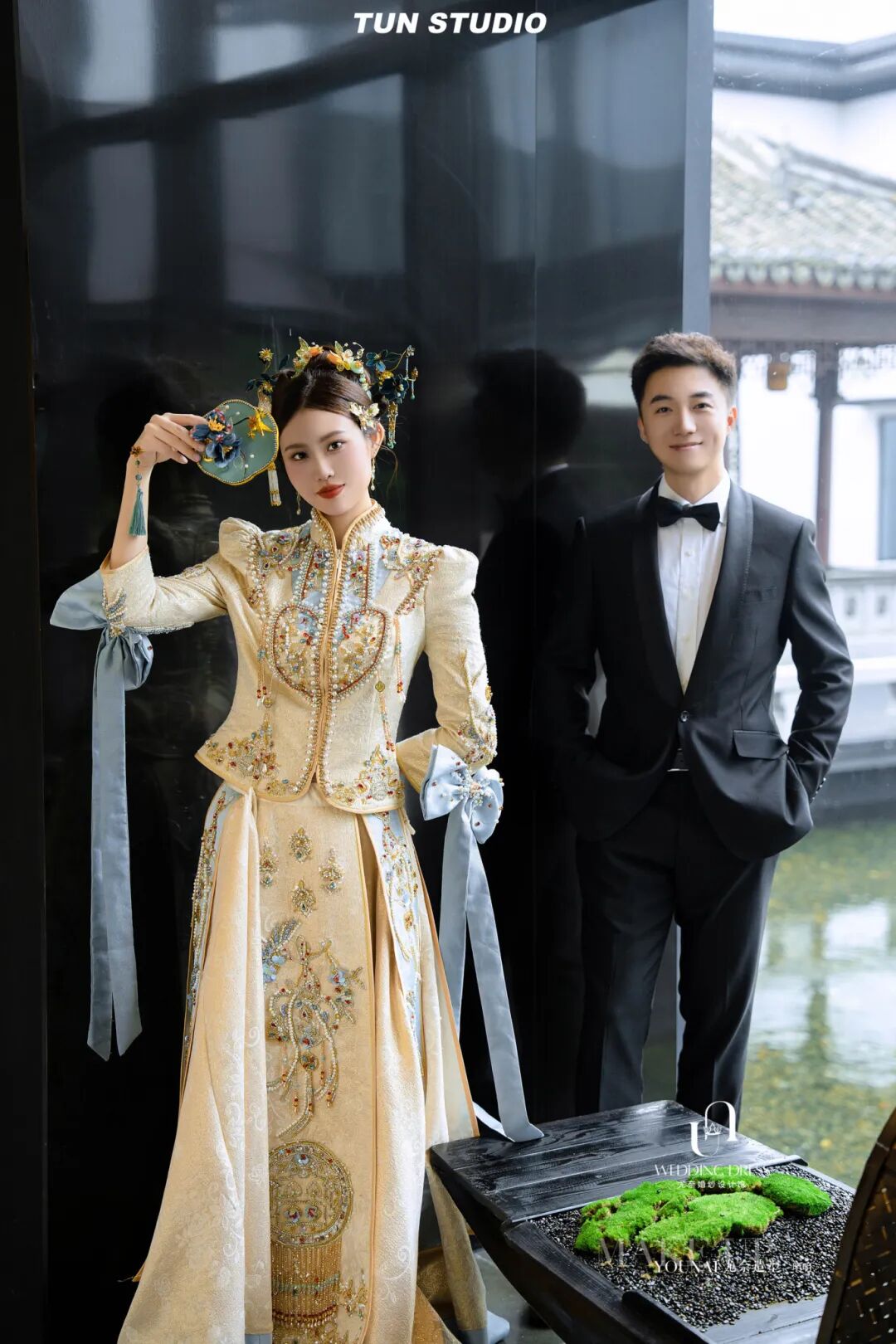 穿上华丽的嫁衣 出嫁的这一天,你是万众瞩目的焦点 遇上 尤奈婚纱设计馆 照亮你的美 ▼